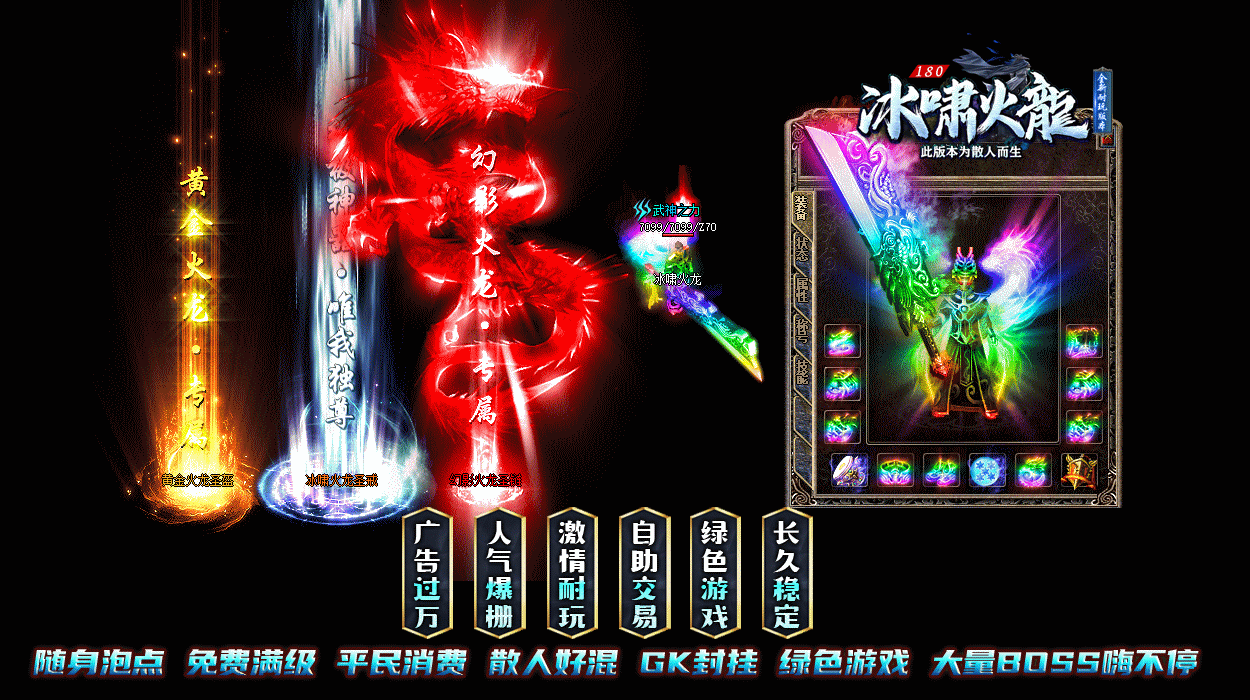 【游戏介绍】 :2026冰啸火龙传奇 - 单件套装 - 极品最高+5【散人打金版本】全新体验 - 等你来战!